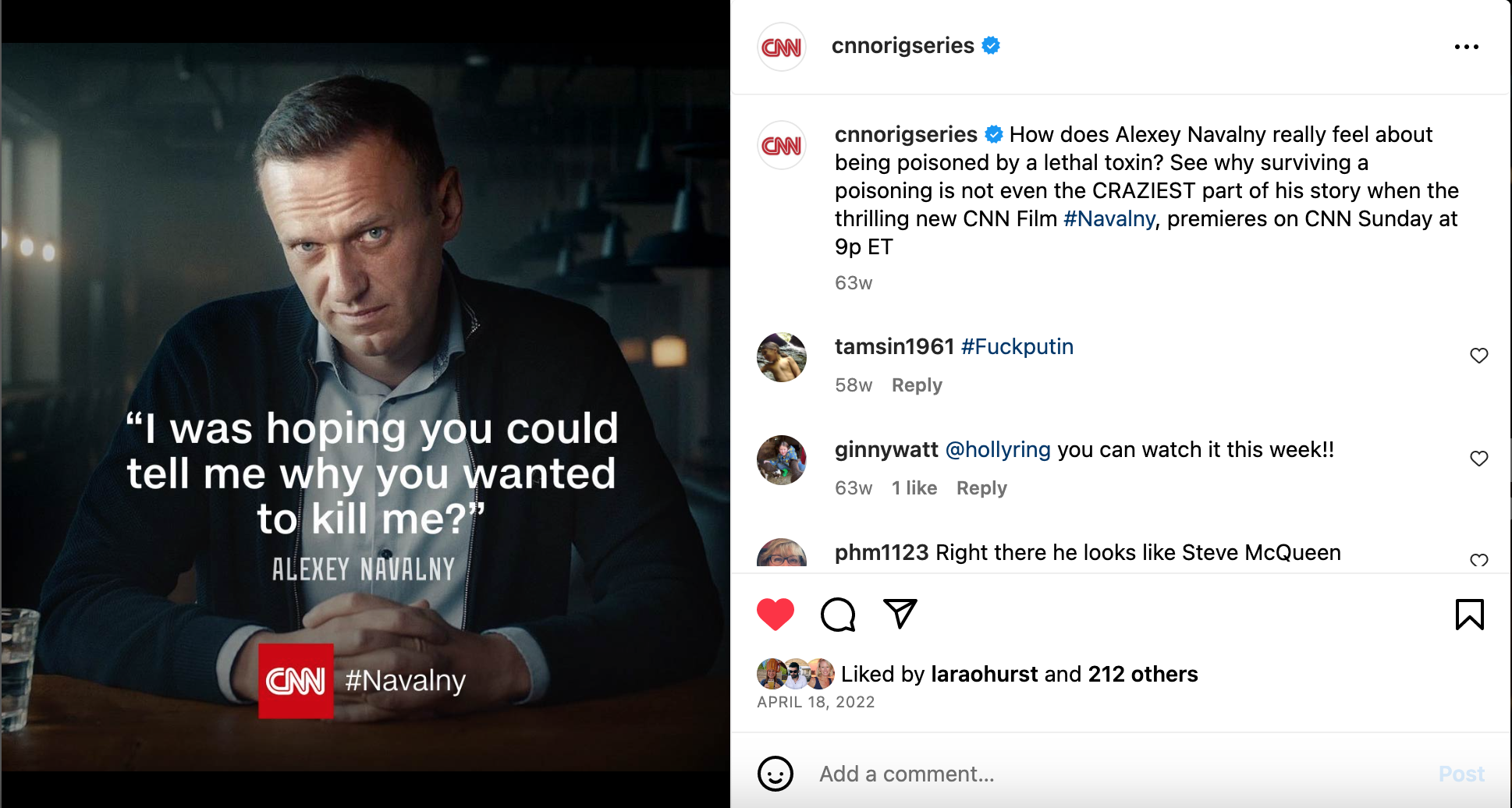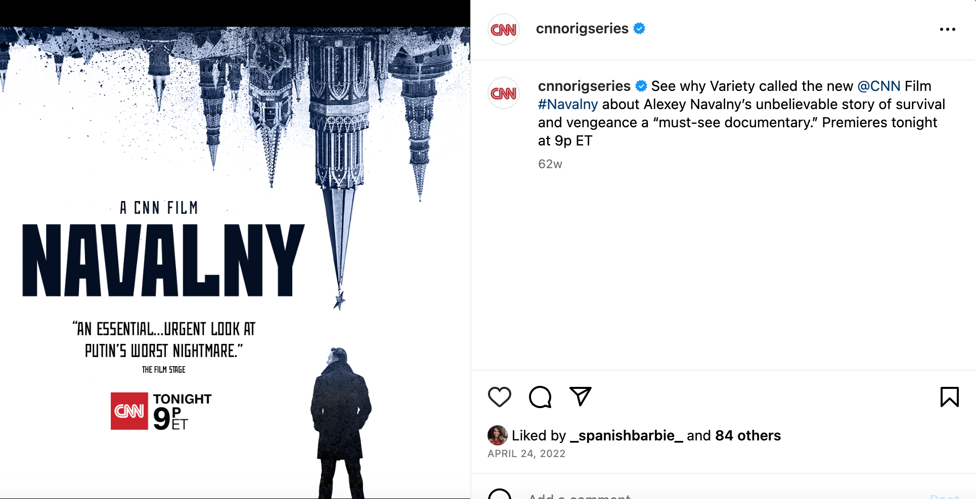 This social campaign was for the 2023 ACADEMY AWARDED, CNN FILMS Documentary, NAVALNY.